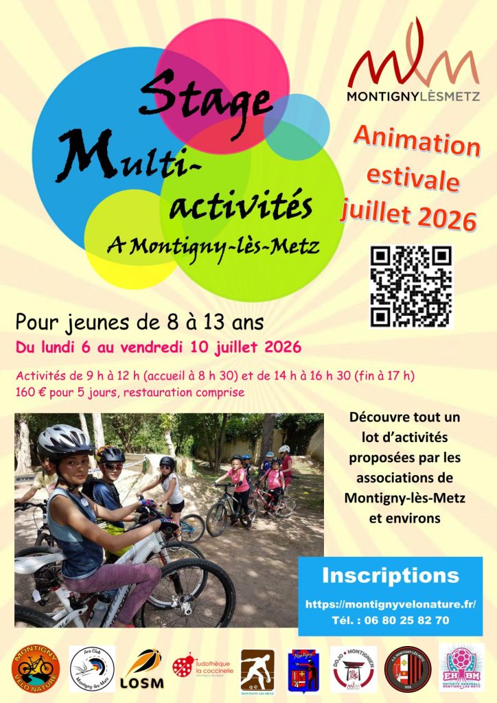 Les déplacements sur les différentes activités se font à vélo. Prévoir un sac à dos avec de l’eau, un casque. Possibilité de mise à disposition de vélos et casques par Montigny Vélo Nature (à réserver lors de l’inscription). Attention : pour participer à ce stage, il faut savoir (bien) faire du vélo.